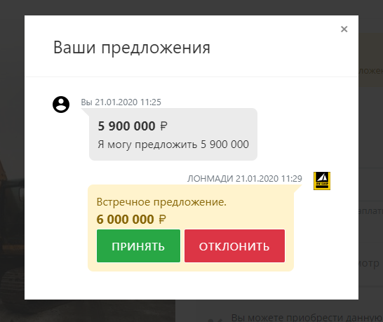- Если ваше предложение принято вы можете купить товар по предложенной цене