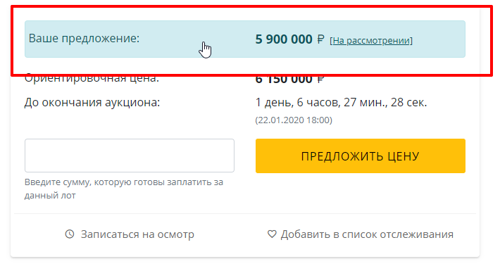 Если ваше предложение отклонено вы можете предложить другую цену пока аукцион активен.